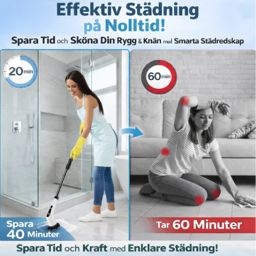 PowerSpin Cleaner™ är en elektrisk, roterande skurborste som gör det enkelt att rengöra badrum, kakel, fogar, golv och andra ytor – utan att du behöver böja dig eller skrubba för hand.